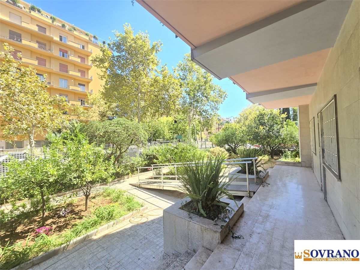 Rara opportunità, sito nell'elegante quartiere Libertà e precisamente in Viale Lazio, una delle strade più belle della città, nel quartiere più residenziale e signorile con tutti i confort, negozi, scuole di ogni ordine e grado, e a pochi minuti dal Parco della Favorita che collega la città a Mondello, siamo lieti di proporre la locazione di un appartamento ubicato al piano terra con ampio spazio esterno di pertinenza esclusiva di ca. mq 540. L'immobile è provvisto di un doppio ingresso, uno carrabile su Via Libertà e l'altro da portineria da Via Lazio, si estende su una superficie interna di ca. mq 160 e risulta così meglio descritto: ingresso su ampio disimpegno, salone doppio con balcone e finestra, cucina semi-abitabile con balcone e finestra, 3 camere da letto con finestra, una camera da letto con balcone, uno studiolo, doppi servizi finestrati di cui uno con vasca, un ripostiglio. L'appartamento gode di una doppia esposizione, pavimentazione in marmo, infissi in ferro e pvc con cancelletti, porta d'ingresso blindata, facile accesso per disabili, porte interne in legno, riscaldamento autonomo, un condizionatore nel corridoio e completa la proprietà una cantina di pertinenza ubicata al piano s1.