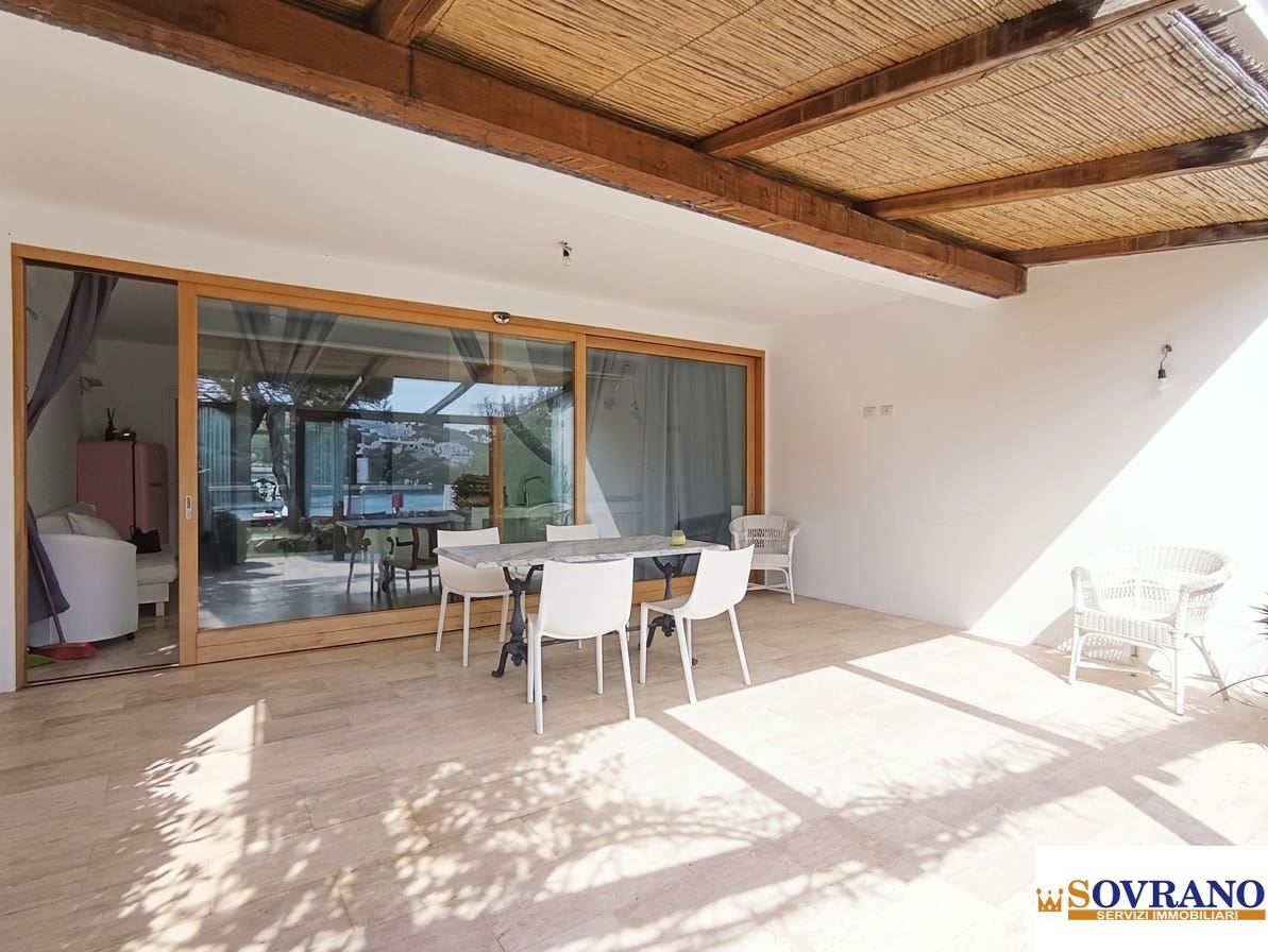 Dal soggiorno si accede ad una bellissima veranda coperta fronte mare, spazio riservato e particolarmente suggestivo, ideale per pranzi all'aperto, momenti di relax o aperitivi al tramonto con vista sugli yacht della marina.