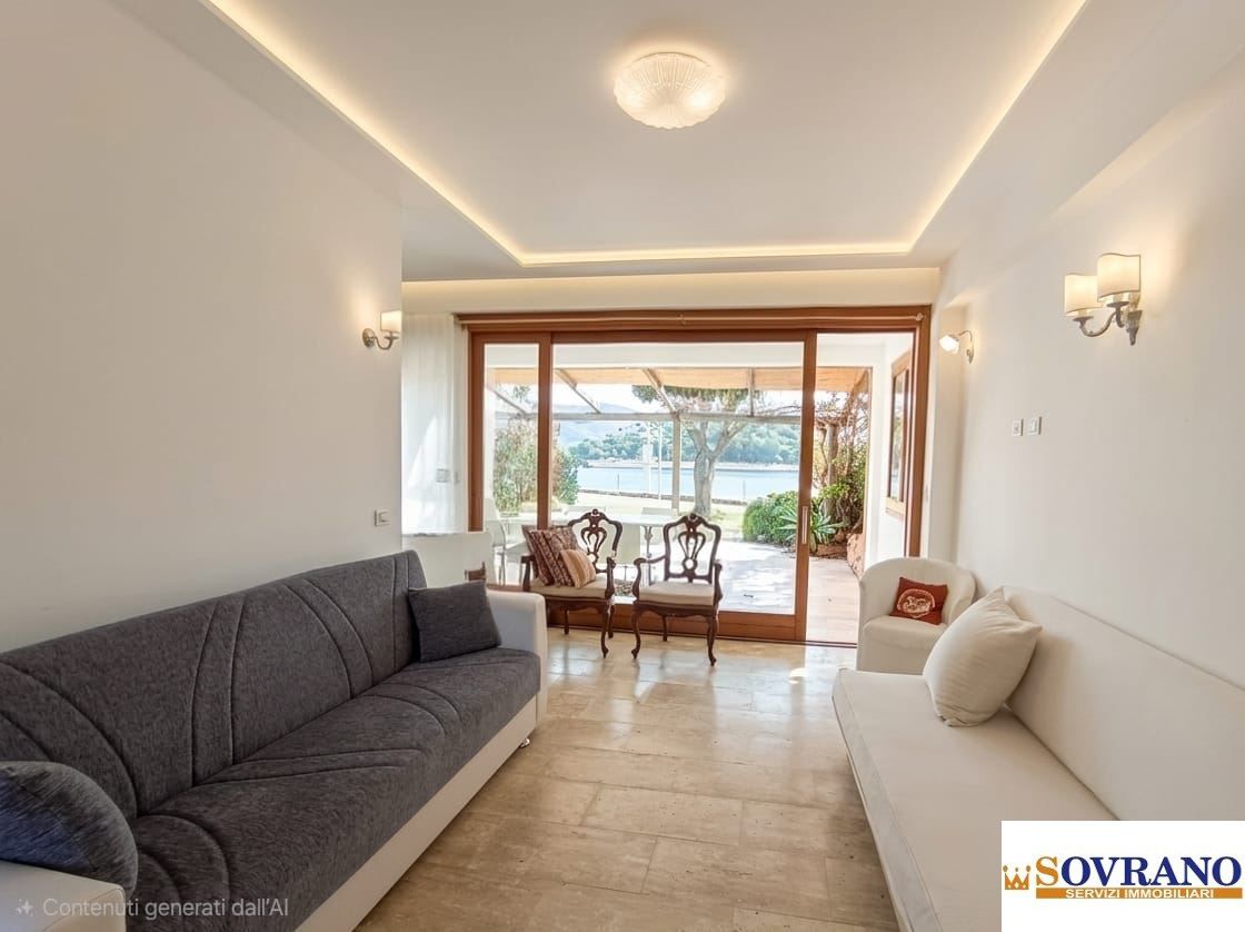 L'immobile, dotato di ingresso indipendente, accoglie in una luminosa zona living con angolo cottura perfettamente integrato, arredata in tonalità neutre ed eleganti, con ampie aperture che valorizzano la luce naturale e il panorama sul porto.