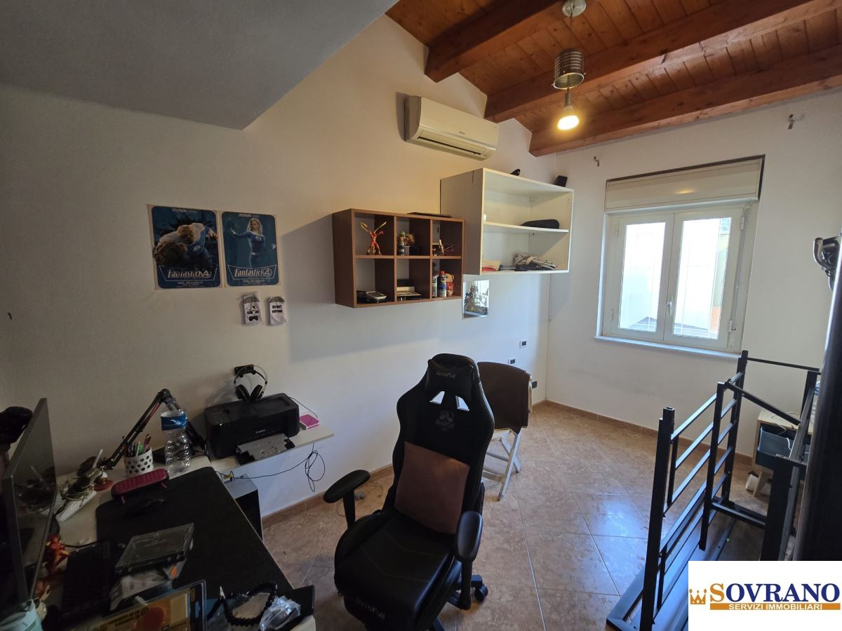 L'ingresso si apre su un disimpegno che conduce a una luminosa cucina abitabile, impreziosita da un comodo balcone e da un pratico ripostiglio. Il soggiorno, spazioso e ben illuminato, regala un piacevole affaccio sull'esterno. Sempre sullo stesso livello troviamo un elegante bagno con vasca. Una scala interna conduce al piano superiore, dove si sviluppa la zona notte: una camera matrimoniale con accesso diretto a un terrazzino riservato, due camerette ben finestrate e un secondo bagno con doccia. A completare la proprietà, un utile sottotetto utilizzato come spazio di deposito.
