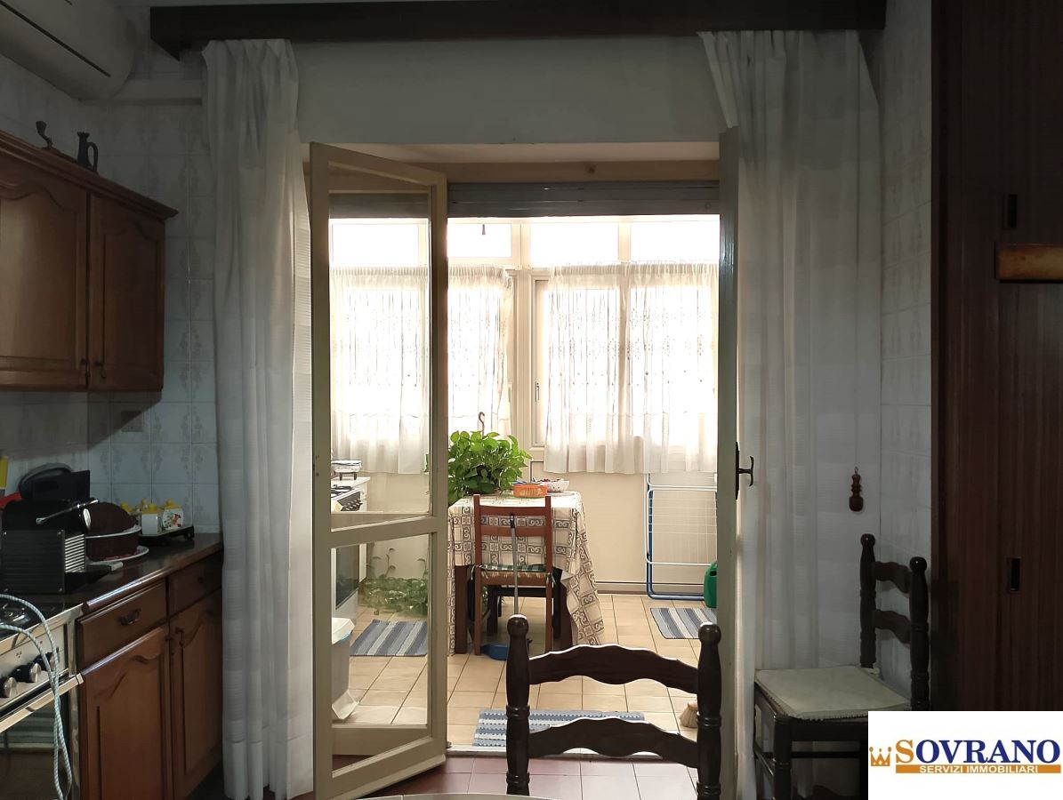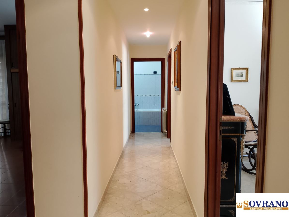 L'immobile si sviluppa su una superficie di circa 150 mq e si presenta in buono stato conservativo. L'ingresso si apre su un disimpegno che conduce ad un ampio salone doppio con balcone. La zona giorno prosegue con una cucina abitabile dotata di un pratico balcone verandato, mentre la zona notte ospita due spaziose camere matrimoniali, entrambe finestrate, un bagno principale con vasca e finestra, e un secondo servizio con doccia.