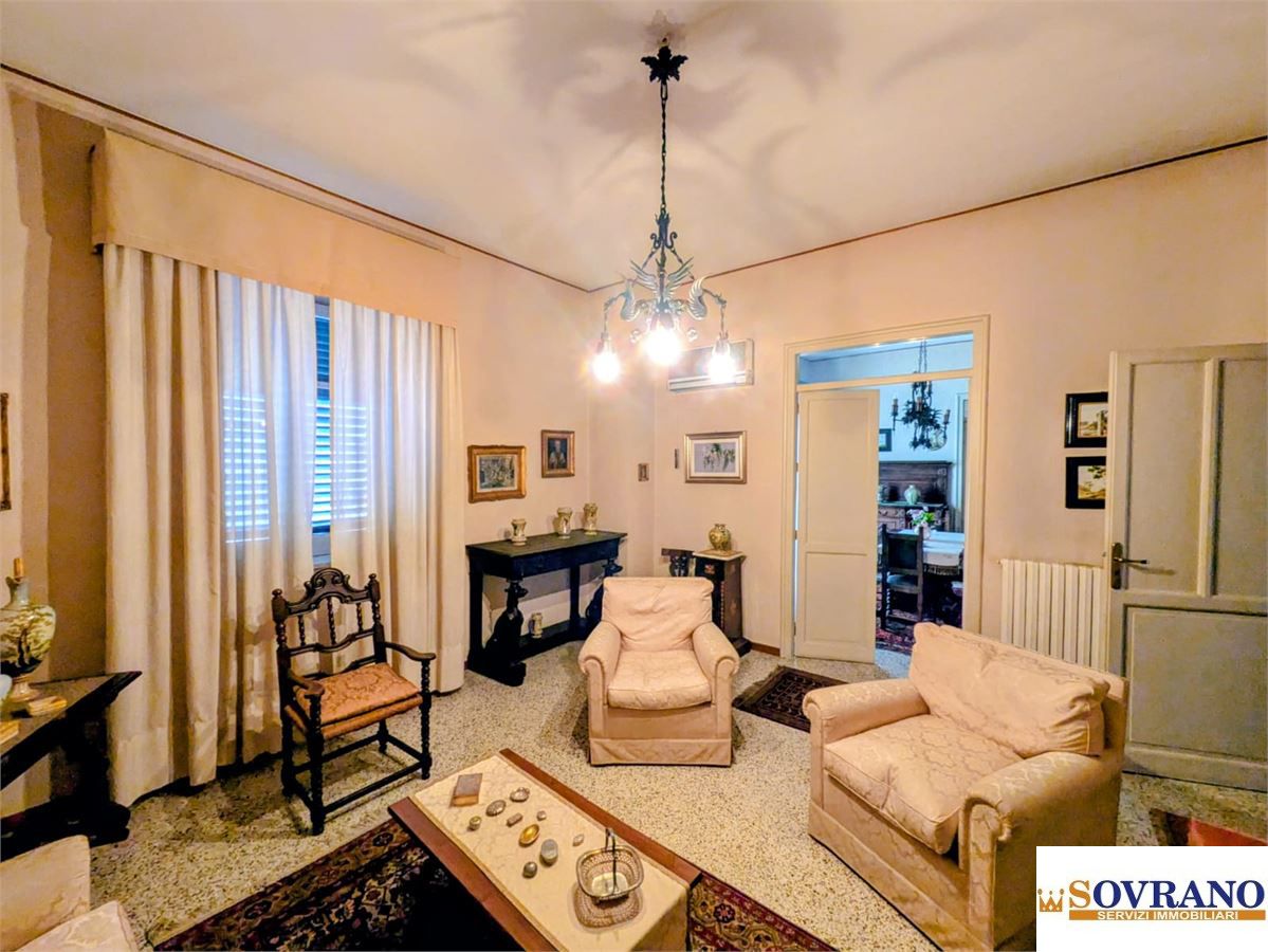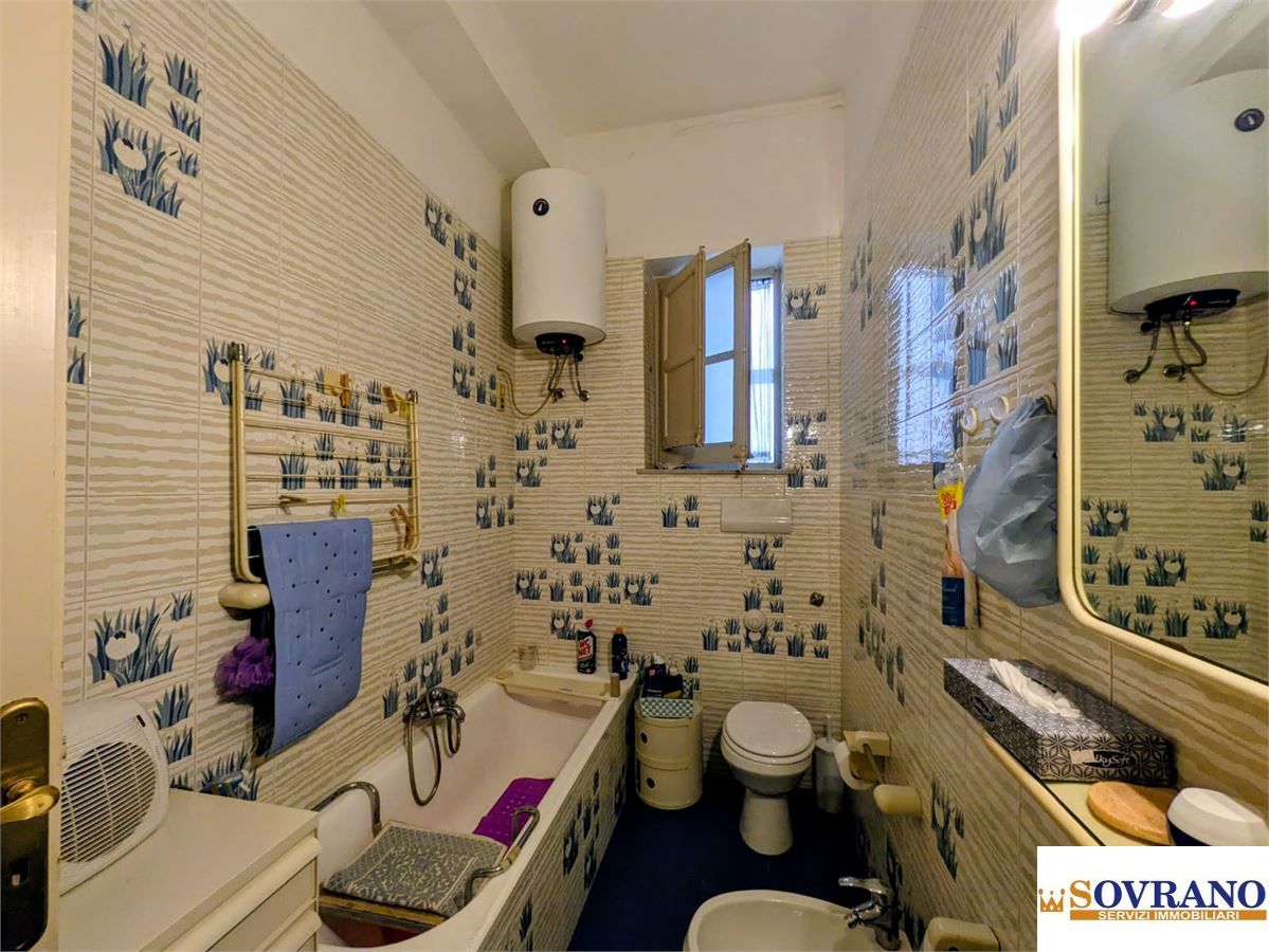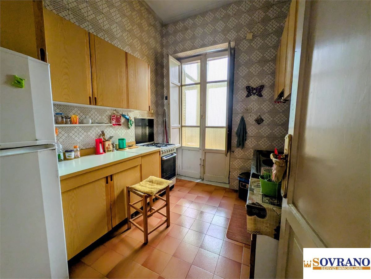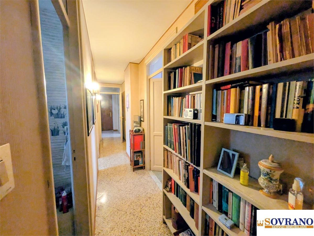L'immobile si presenta in buono stato e con una distribuzione degli spazi funzionale e ben articolata: l'ingresso conduce ad un ampio disimpegno, dal quale si accede al salone comunicante con il soggiorno affacciato sul balcone a prospetto. La zona notte comprende una camera da letto matrimoniale finestrata e due camerette, anch'esse con balcone a prospetto comunicante con il soggiorno. Completano la proprietà due bagni finestrati con vasca, un ripostiglio e una cucina semi-abitabile, valorizzata dalla presenza di una grande veranda adiacente.