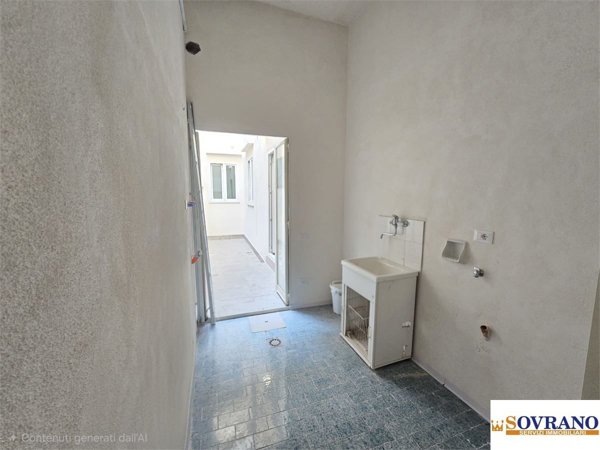 L'appartamento è composto da ingresso su ampio salone con cucina, una camera matrimoniale, una cameretta, un bagno e una spaziosa lavanderia. Gli ambienti sono luminosi e ben distribuiti, rifiniti con pavimentazione in ceramica effetto marmo.