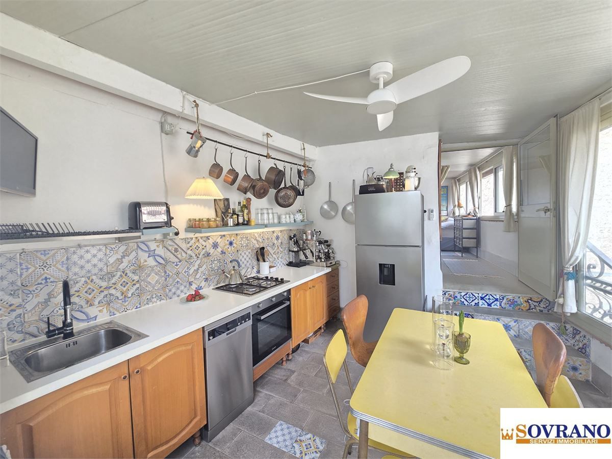 Al piano terra troviamo ingresso e ripostiglio. Il primo piano ospita un kitchenette (angolo cottura), un accogliente soggiorno, una camera da letto, un bagno e un balcone. Al secondo piano è presente un bagno completo con doccia. Al terzo piano si sviluppano una cucina/soggiorno, una camera e la grande terrazza privata, perfetta per il relax.