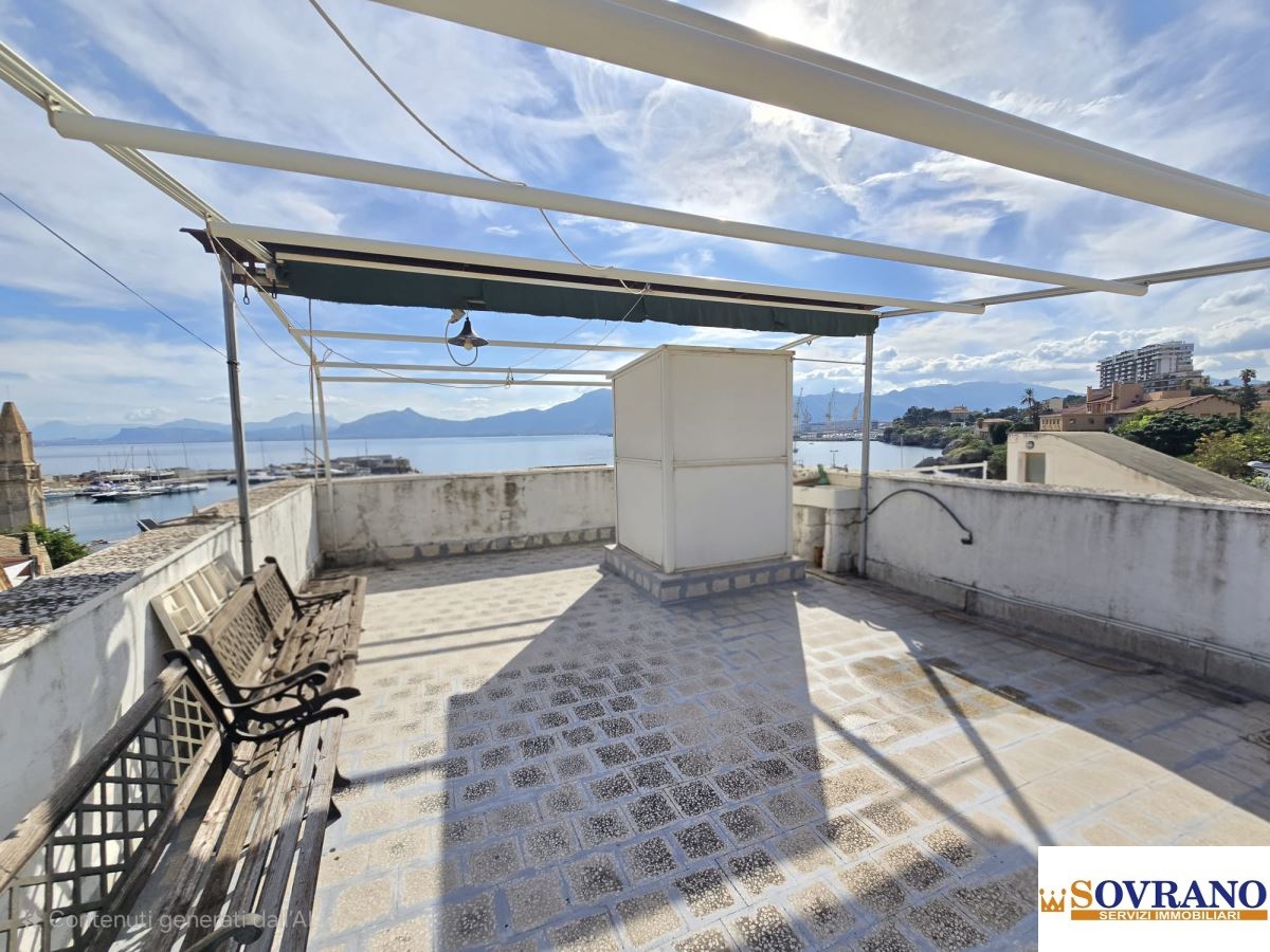 L'immobile, da ristrutturare, presenta un grande potenziale: al primo piano si trova una zona giorno con cucina-soggiorno, bagno con doccia e camera soppalcata collegata da scala a chiocciola. Dalla stessa scala si accede al terrazzo di circa 40 mq, un autentico angolo di charme con vista unica sul mare e sui simboli storici della Palermo dei Florio.
