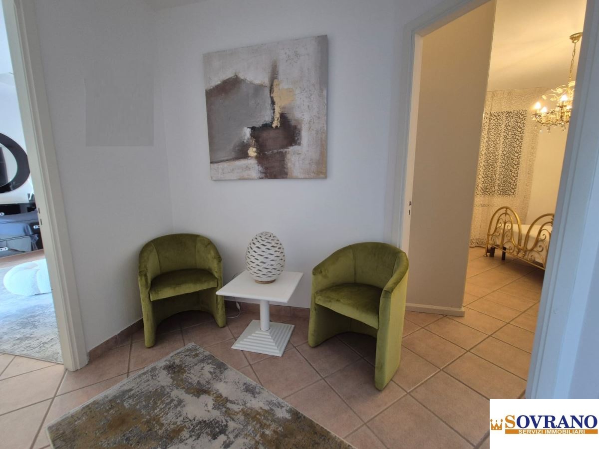 L'ingresso conduce a una zona living ariosa e accogliente, illuminata da una grande vetrata che inonda l'ambiente di luce naturale e si fonde armoniosamente con una raffinata cucina in muratura. Ogni angolo trasmette calore e convivialità, mentre la veranda chiusa a vetri aggiunge spazio e versatilità, perfetta per godersi il panorama in ogni stagione. Il piano terra ospita anche un comodo servizio, mentre salendo al piano superiore si apre la zona notte con due camere da letto, di cui una con cabina armadio, e un bagno elegantemente rifinito.