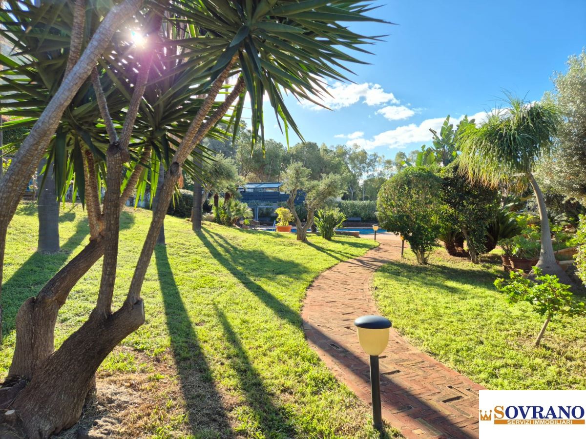 Costruita negli anni '90, la proprietà è immersa in un meraviglioso giardino privato di circa 3.000 mq, un'oasi di quiete impreziosita da due piscine, di cui una con idromassaggio, e da un rigoglioso prato all'inglese che ospita importanti essenze arboree.