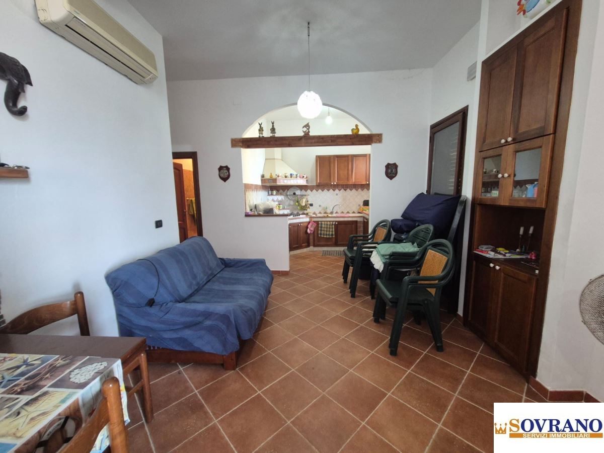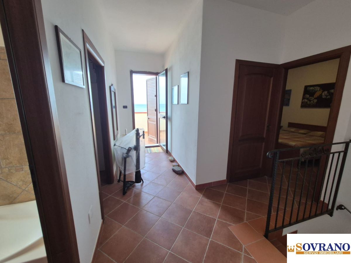 Distribuita su due livelli per complessivi 120 mq interni, la proprietà si presenta in buono stato e abitabile da subito. Al piano terra si apre un ampio e luminoso salone, con porte in legno massello e un'accogliente cucina in muratura, ideale per vivere la convivialità tipica delle case sul mare. Sul medesimo livello è presente un bagno di servizio e l'accesso agli spazi esterni che conducono al sentiero privato verso la spiaggia, un privilegio raro che consente di raggiungere il mare in totale riservatezza.