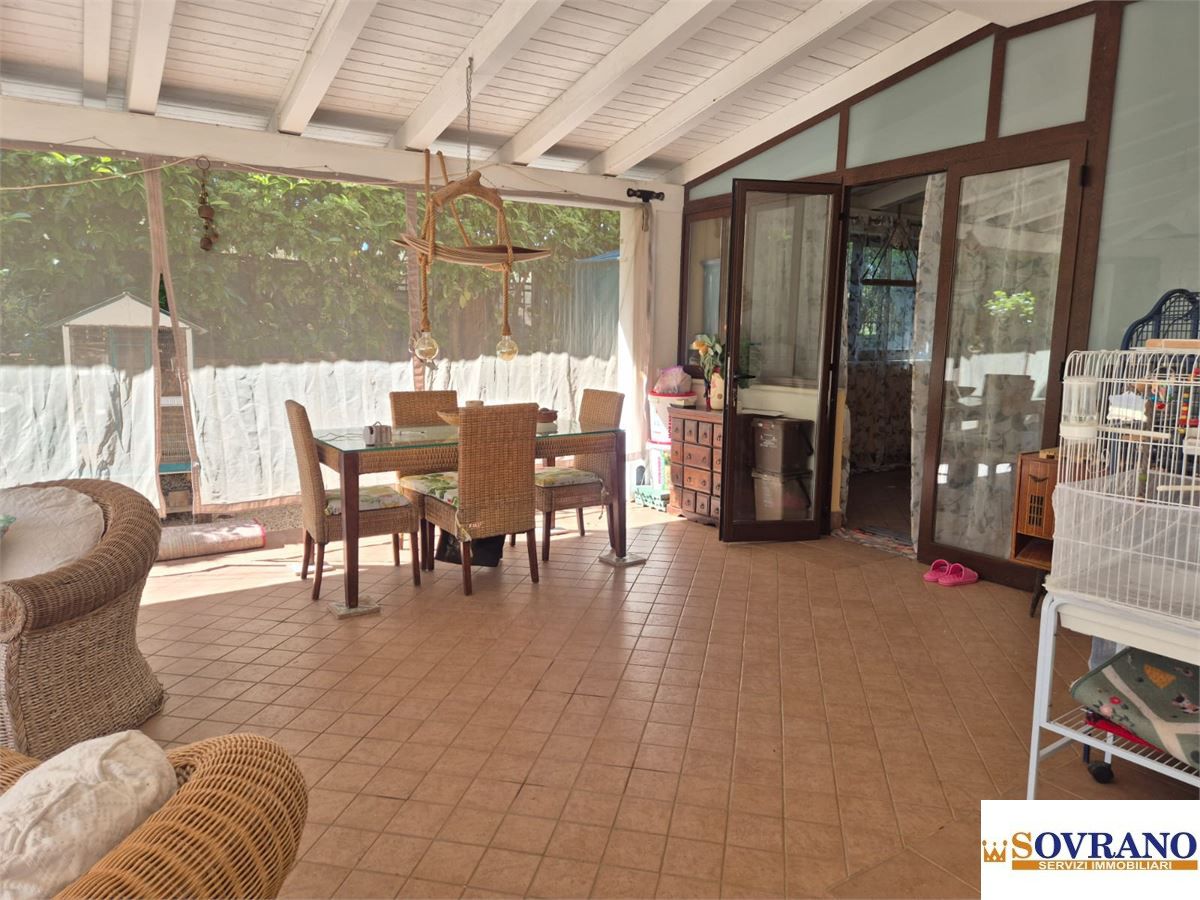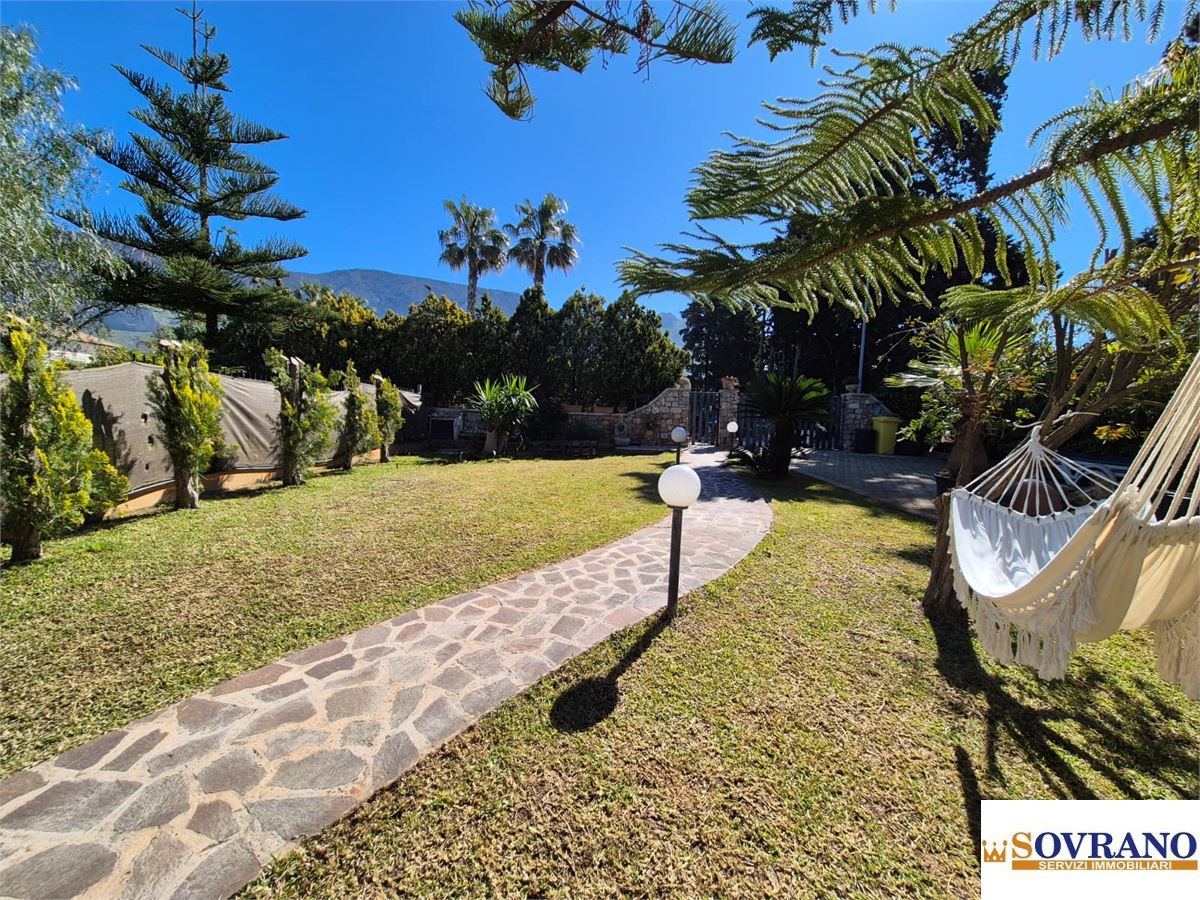 Nel suggestivo contesto del Comune di Terrasini, a pochi minuti dal rinomato complesso turistico Città del Mare e dalla splendida Perla del Golfo, proponiamo in vendita un'elegante porzione di villa bifamiliare inserita all'interno di un curato residence dotato di piscina condominiale. La proprietà, in ottime condizioni abitative, si sviluppa su una superficie interna di circa 120 mq. L'ingresso, preceduto da un ampio portico, conduce a un luminoso soggiorno, angolo cucina; Il piano terra è completato da un pratico ripostiglio e da un bagno. Una comoda scala interna accompagna al livello superiore, dove un disimpegno introduce alla zona notte composta da due camere da letto, entrambe con accesso a un balcone terrazzato, oltre a due ulteriori ripostigli e a un secondo bagno. All'esterno, la villa è circondata da un ampio spazio di pertinenza esclusiva di circa 600 mq impreziosito da un curato prato inglese. La proprietà dispone inoltre di ingresso carrabile, con comoda possibilità di parcheggio grazie al posto auto interno alla villa e ulteriori spazi esterni dedicati, garantendo praticità e sicurezza. Completa l'immobile il riscaldamento autonomo, elemento che assicura comfort e gestione efficiente dei consumi durante tutto l'anno.